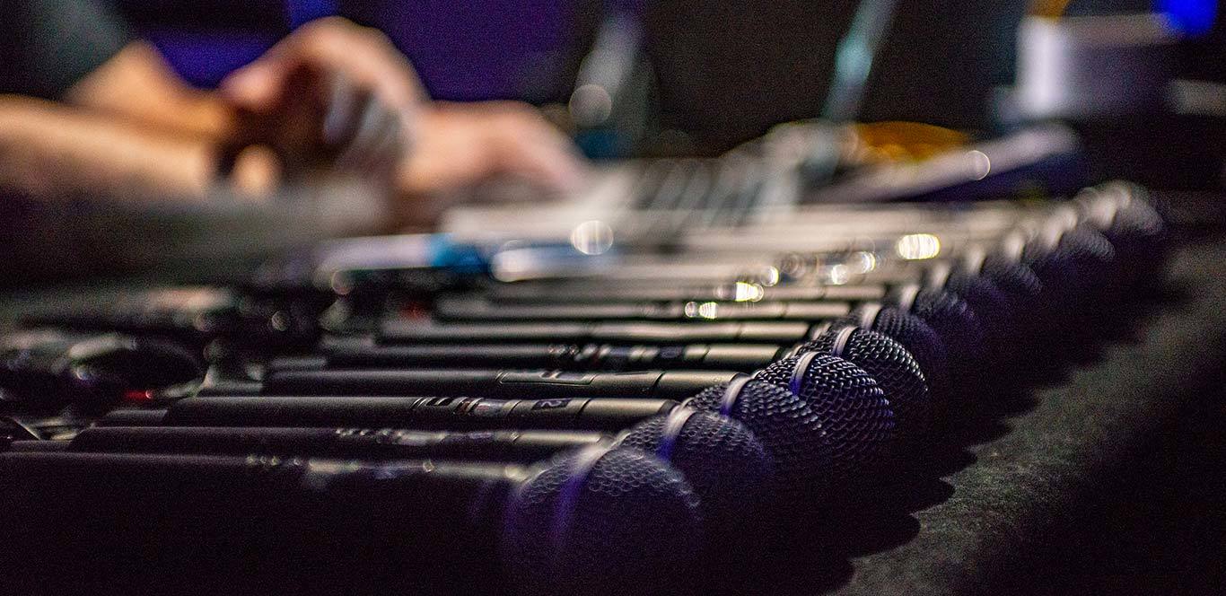 AVD features state-of-the-art digital wireless microphone systems as well as professional-grade analog mics to suit every budget. Before arriving at the venue or going on-site, at our testing facility, we analyze and perform radiofrequency coordination for every event based on microphone count needs and city location. We then coordinate our frequencies allocation report directly with the venue so that we do not use their frequencies, and they are not using ours. This prevents inner modulation or interference on-site.